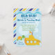 Enjoy some maritime fum with this adorable nautical invitation featuring a submarine, a turtle and some bubbles, the revers is a fun preppy stripe!