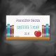 A simple business cards design with books and a red apple . They're perfect for people working in education (including teachers , substitute teachers , teacher aides , tutors , educators and more ) . The template makes it easy for you to personalize them with your name , title and other information . They are also available in black .