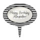 Subtle Age Black and White Stripe Happy Birthday Cake Topper