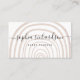 This simple and trendy business cards feature an abstract, arch shaped design in a neutral color on a white background. Your name appears in trendy handwritten script typography. There is also room to include your social media information on the back.