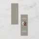 Elegant and classic, vertical white script font mini business card with customizable photo. Subtle and minimalist faux fabric texture gray linen texture on front and back.