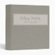This 3-ring binder showcases a modern, minimalist design with classic gray script on a light gray banner and a subtle faux linen texture. Elegant yet understated, it’s ideal for both personal and professional use. Customize with your name and add additional text for a personalized touch.