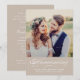 Share your marriage news with quiet elegance and invite loved ones to your wedding reception with this taupe calligraphy photo invitation. A soft taupe banner features "Announcing" in flowing white script with names, date, and ceremony location. The back provides full reception details with venue, time, and RSVP information. Add your own photo and personalize every detail to share your happy news.
