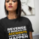 Embrace the art of subtle comebacks with our 'Subtle Vendetta Tee'. Perfect for those who prefer to let the universe do the talking, this shirt boldly states, "Revenge is Beneath me. Accidents However Will Happen." It's the ultimate blend of dark humor and a nonchalant attitude towards life's little dramas. Made for those who can laugh in the face of adversity and prefer a more 'accidental' approach to comeuppance. Wear it, make a statement, and watch the universe conspire in your favor.