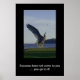 A motivational print of a seagull flying up to catch a peanut with an inspirational quote. "Success does not come to you.... you go to it!"