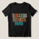 This vibrant t-shirt features the motivational phrase "Success Starts Here" in bold, multi-colored letters, set against a dynamic gradient background. The design's bold colors and eye-catching typography create a powerful statement, inspiring wearers to embrace their potential and strive for their goals.