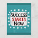 "Success Starts Now" is a cute inspirational or motivational quote with a white accent shape surrounded by white textured whimsical dots.