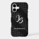 iPhone Case with Stylish Silver Monogram on Geometric black pattern silver foil polka dots ornament (a silver foil ornament - are simulated). For Creation and Customise Your Personal Monogram template. Business Man Fashion Graphic design. Electronics > Phone Cases > iPhone Cases > iPhone XS Cases. iPhone Case trendy gift (for him) From "Successful Businessman" - collection. Elegant Gift Decoration for a friend, brother, father, dad, boy, boy friend, husband, business partner or concept design for startup business, birthday, anniversary, holiday, fathers day, perfect for every occasion. Personalize a own for your Trendy Elegant Design.