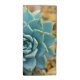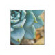These cloth cocktail napkins feature an aqua succulent planted in a bed of tan pebbles.