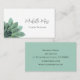Green botanical business card, with a lovely succulent image on a white background. With elegant script lettering, you can customize with your own information. The back of the card has a soft green color that matches the front image and black customizable lettering. Great for getting the word our about your business.