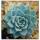 Rich with spiky texture, this aqua, seafoam green succulent is planted in a bed of tan pebbles.