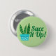 Cute and funny succulent snake plant graphic button with the phrase "Succ It Up" and a green background color! Add some funny flair to your backpack or tote bag!