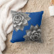 This throw pillow flaunts two gray succulents placed on a sapphire blue background.