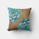 Two aqua succulents are placed on a rustic brown background, giving these pillows earthy charm.