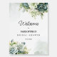 Floral delicate watercolor compositions of succulents, roses and green branches. Elegant bridal Shower Welcome sign.