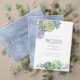 Unique fonts, colorful watercolor succulents and glittery backgrounds in a soft dusty blue are the highlights of these mix-and-match wedding products. This beautiful wedding invitation features succulent corner ornaments and a template to easily edit your event details. A shiny, textured pattern, in light and dark tones of blue, adds a contrasting background on the reverse. Search ID515 to see all the matching products in this set.
