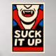 Sink your teeth into this bold and graphic vampire print, featuring a close-up of a vampiric mouth with sharp fangs set against a background of reds, blues, and velvety black. Below, the phrase “SUCK IT UP” is emblazoned in large, vintage-inspired letters, creating a striking message with a darkly humorous twist. Perfect for Halloween devotees, retro poster collectors, and fans of both spooky and motivational decor. Ideal for wall art that bites back with attitude.
