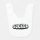 First of all, the shipping was fast. This bib was everything I had hoped for. It has such a smooth feel to it and is machine washable. The colors are vivid and the image quality is just as pictured on the web. Will be happy to give this as a New Baby gift !
