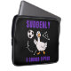 The sleeve is made of nice feeling material and seems very durable. I'm not sure how easy it'll be to clean, but the construction seems sound and the fabric is quick thick. I also like the double zipper. The printing is lovely and appears durable. The white on black contrast is nice, and the design very elegant.