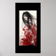 A dramatic semi-abstract manga style poster in black and white and red. Inspired by Lady Snowblood.