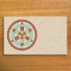 This design is based on a medieval apotropaic (protective) symbol carved in stone inside a church in Worlington, Suffolk, England. Here the symbol features hues based on the palette of colors from the Bayeux tapestry.