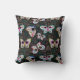 cute and spooky sugar skull butterflies pillow, colorful butterflies on muted black paisley