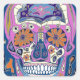 This features my tattoo style, colourful design of a sugar skull inspired, by The Day of The Dead. The highly patterned skull has orange flowers in the eye sockets and a traditional design on the forehead. The colours are mainly orange blue pink and white.