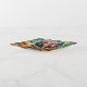 I was very surprised at the high quality fused glass trinket tray. The smooth, glossy tray has some heft, and is relatively thick, with edges that are not sharp or pointy. It is smoothly contoured to the center of the tray where small items can rest and be readily retrieved again. This is one of the best products I have ordered from Zazzle. It far exceeded my expectations. Very beautiful! Vivid printing with lots of detail. The design is also visible in the shadow of the trinket tray edges. I love the effect.