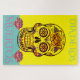Sugar skull Dia De Los Muertos jigsaw puzzle for holiday family fun. Bold colors and lots of fun! You might even try to frame it when complete, or place it under glass on a table for a decorative table top.