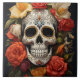 A vibrant celebration of life and tradition, this artwork features a dazzling sugar skull adorned with intricate patterns in hues of turquoise, magenta, and gold. Surrounding it is a luminous burst of orange and sunny yellow blossoms, their petals radiating warmth and vitality. Together, the elements create a harmonious blend of vivid colors and symbolic beauty, evoking the spirit of Día de los Muertos with both reverence and joy.