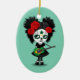 Sugar Skull Girl Playing Brazilian Flag Guitar Ceramic Ornament