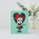 This adorable design by artist Jeff Bartels features a small girl playing an old acoustic guitar painted with the gay pride rainbow flag. The exaggerated features along with the large head and eyes give the design a stylish cartoon or anime look. The girl is decorated with Day of the Dead sugar skull make up which includes a star, flower pedals and swirls. Three red roses appear in the woman’s jet black hair that is echoed in her Gothic dress and boots. This unique little guitarist girl is a stylish way to show off your support for gay lesbian and LGBT issues.