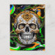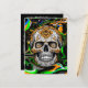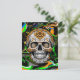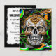 Personalized Halloween Party Invitation. Black, orange and blue sugar skull Halloween postcard invitations.