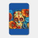Indulge in the enchanting charm of a daring and lively Sugar Skull adorned with stunning blue, yellow, and orange flowers.