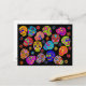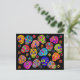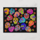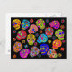 Mexican folk art sugar skulls postcard. Background color can be customized.