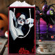 Day of the dead sugar skull woman portrait with red roses in a backdrop of black.