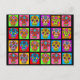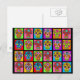 Multicolor sugar skull squares postcard. Background color can be customized.