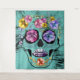 Sugar Skull Teal Female Flower Skull. Shades of Lavender Female Flower Skulls large wall art. Flower Skull Wall Hanging. "Day of the Dead" art design for lovers of skulls and bold flowers with teal grunge background accents. Original designed Gothic human skull with vibrant flowers. You can experiment with background colors, sizes and styles to match many room decor themes for bedroom to living rooms.