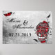 Sugar Skull Wedding Date Poster. A great Dia De Los Muertos Day of the Dead sugar skull design poster in red, black, white and greys. Poster is designed so you can customize with your own text with your wedding date and bride and grooms names or leave blank and write whatever you want on it yourself. Many brides use this poster for their seating charts or to add pictures on it of the bride and groom growing up and I have had one person use it for guest signatures for their wedding as a token of remembrance for the bride and groom.