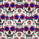 Sugar Skull With Blue Eyes and Green Fleur de Lis Fabric