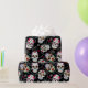 A colorful gift wrap for Day of the Dead festivities, featuring a variety of decorative sugar skulls with flower and swirl accents on an optional black background. If you prefer, change to any other background color. Search ID725 to see other color choices and products with this fun pattern.