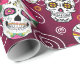 A colorful gift wrap for Day of the Dead festivities, featuring a variety of decorative sugar skulls with flower and swirl accents on an optional rose red, textured-effect background. If you prefer, change to any other background color by simply deleting the red layer. Search ID725 to see other color choices and products with this fun pattern.