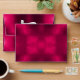 A colorful envelope design for Day of the Dead festivities, featuring a variety of decorative sugar skulls with flower and swirl accents on an optional textured-effect rose red background. If you prefer, the 'Dia de los Muertos' text layer can be deleted for a pattern-only design. Search ID725 to see other color choices and products with this fun pattern.