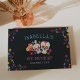 Create a sweet birthday keepsake with this spooky chic guest book that's perfect for Day of the Dead themed, Halloween, or Dia de los Muertos theme birthday parties. Rich off-black design features a pair of intricately decorated floral sugar skulls or calaveras, with colorful flowers at the corners. Personalize the front with three lines of custom text, and add additional personalization to the contrasting aqua spine.