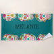 Create a special personalized gift when you add a name to this beach towel. It features colorful sugar skulls illustrations set against a teal background with your name at the center in dark teal lettering.