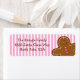 Customizable Christmas address labels or gift tags with an adorable little gingerbread man with pink candy nose and buttons and white frosting. Pink and white striped background. Coordinated note cards, postage stamps, stationery and mugs also available! PinkInkArt original!