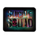 Technicolor 3D Suicide Squad logo with a Skull in the letter Q. Colored letters on black background.