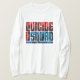 Red and Blue Suicide Squad logo with characters seen inside each letter.