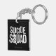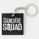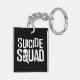 Black and White Suicide Squad logo with a Skull in the letter Q. White letters on black background.