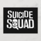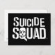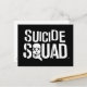 Black and White Suicide Squad logo with a Skull in the letter Q. White letters on black background.